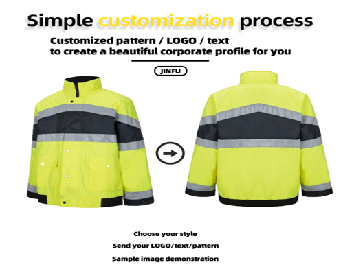 The main color scheme is a striking bright yellow, with a wide dark (black/dark gray) horizontal stripe in the middle of the garment as decoration, and dark color matching is also present in details such as cuffs; The style appears to be short, casual/functional, and may be a workwear jacket or a daily casual jacket; The display image presents the front style of the clothing, with a simple overall design and vivid color contrast, which is visually recognizable.