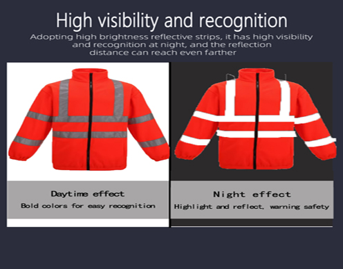 Core function: The clothes are designed with reflective strips, which can reflect light in low light environments (such as night and cloudy days), greatly improving the visibility of the wearer and reducing safety risks during travel (especially in road related scenes).