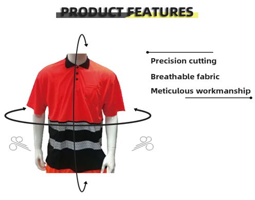 This garment is a red and black color blocked short sleeved polo shirt, with the following core features and design advantages: