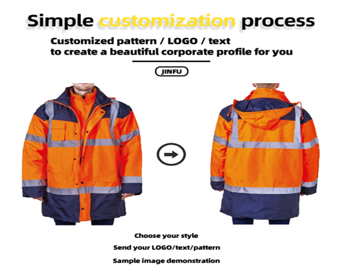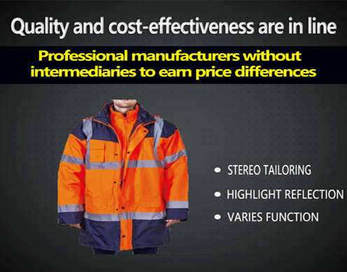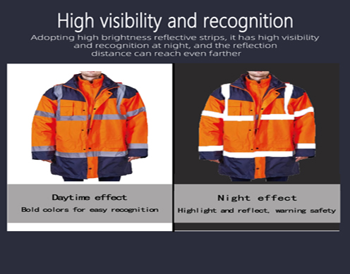 Design and Materials: Adopting a striking color scheme of orange blue splicing, paired with multiple silver reflective strips, it can effectively reflect light sources in low light conditions, improving the visibility of operators; The fabric combines protection and breathability, providing a comfortable wearing experience in complex weather conditions.